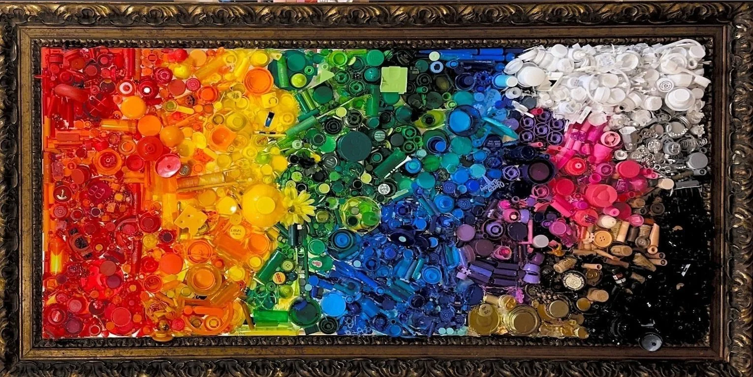 Jess’s work explores accumulation— of words, of community, of space, of stuff. She spends lots of time collecting, cleaning and categorizing loose parts to be used for larger pieces, built into puppets, or explored by her students in the classroom. 100% of the materials Jess uses are recycled, the majority of which she finds on the street.